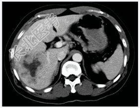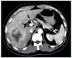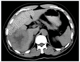 - [材料题] 患者,男性,52岁,因右上腹痛1个月、加重3天入院。体查:肝不大,肝区触痛明显,脾不大。实验室检查血AFP明显增高。行上腹部CT平扫+增强扫描。
