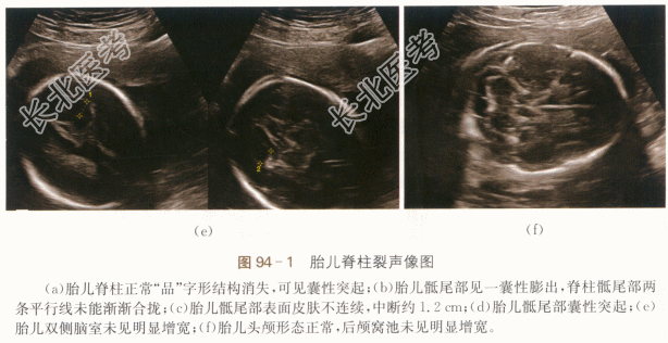 2.诊断 胎儿脊柱裂合并脊膜膨出。