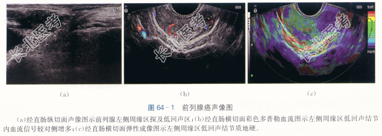 - [材料题] 患者,男性,79岁,因“发现血清PSA值升高1年”就诊。患者1年前体检发现血清PSA值升高,之后复查两次,PSA值逐渐增高,1月前PSA值为8.21ng/ml。期间无发热,无尿频、尿急、尿痛,夜尿1~2次,尿液颜色正常。体格检查:患者双肾无叩击痛,双侧输尿管走行区无压痛,耻骨上膀胱区无膨胀,无压痛,直肠指检示前列腺体积稍增大,中央沟变浅,左侧扪及结节,结节质硬。实验室检查:PSA8.2ng/ml,fPSA0.98ng/ml,fPAS/PSA0.12,尿常规、血常规(-)。影像资料如下: