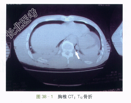 胸椎CT:T₁₂骨折,如图38-1所示。