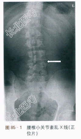 腰椎X线片提示:腰椎侧弯,腰椎轻度退变。如图85-1所示。