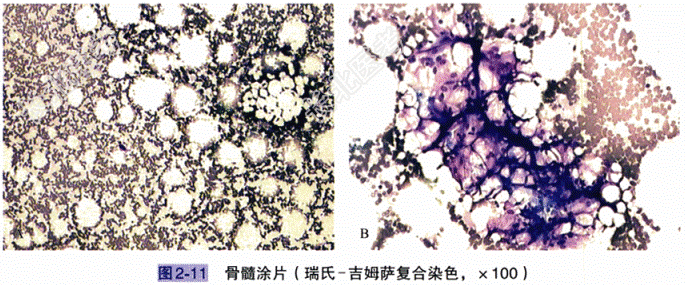 - [材料题] 患儿,男,8岁,病程长。患儿病程中主要表现为4⁺年前明确诊断为“再生障碍性贫血”,未给予正规治疗,自行规律口服“中草药”治疗效果不佳,无发热、鼻出血、牙龈出血、便血,无头晕、乏力、食欲缺乏,无头痛、意识改变、抽搐,无腹痛、呕吐、腹胀,无四肢关节肿痛、关节水肿及尿少、尿色改变等。6个月前患儿“受凉”后出现干咳,为阵发性连续咳嗽,给予中药治疗后效果不佳(具体诊疗经过不详)。现查血常规提示PLT再次下降,患儿自发病以来神志清楚,精神良好,饮食如常,睡眠良好,大小便如常,体重无明显改变。体格检查 T36.7℃,P97次/分,R24次/分,SpO₂96%,BP101/66mmHg。神志清楚,精神反应可,轻度贫血貌,右肩胛区可见一大小约3cm×4cm的瘀斑,周围可见散在针尖大小出血点,未高出皮面,压之不褪色,其余皮肤未见皮疹及皮肤出血点,浅表淋巴结未触及肿大;面色及口唇稍苍白,口腔黏膜光滑,咽无充血,扁桃体Ⅰ度肿大、未见分泌物;双肺呼吸音稍粗,未闻及干、湿啰音,心率97次/分,心律齐、心音有力,各瓣膜听诊区未闻及杂音;腹软,全腹无压痛、反跳痛、肌紧张,肝、脾未扪及,肠鸣音正常;四肢及神经系统查体无异常。(1)常规检查:①血常规:WBC4.05×10⁹/L,RBC3.17×10¹²/L,Hb101.0g/L,PLT49.0×10⁹/L,Hct0.32,MCV100.9fl,MCH31.9pg,中性粒细胞百分比22.0%,淋巴细胞百分比69.6%,中性粒细胞绝对数0.89×10⁹/L。②血液生化:超敏C反应蛋白6.98mg/L,免疫球蛋白IgG、IgM、IgA、IgE及肝、肾功能均未见明显异常。③肺部CT:未见明显异常。(2)细胞形态学检查:①血象结果:WBC数量减少,成熟红细胞形态基本正常(图2-10)。②骨髓象结果:多部位穿刺显示骨髓增生重度减低。粒、红两系细胞重度减少,粒系以成熟粒细胞为主,红系以中、晚幼红细胞为主;细胞形态大致正常。淋巴细胞比例明显增多,可达80%以上。巨核细胞明显减少,多数缺如。浆细胞、组织嗜碱细胞、网状细胞增多,可见非造血细胞团。骨髓小粒细胞面积减少,呈空虚网状,以非造血细胞为主(图2-11)。(3)病理组织学检查:增生重度减低(与相应年龄比较);造血细胞减少,巨核细胞减少或缺如;无粒红系核左移,非造血细胞增多(淋巴细胞、浆细胞、组织细胞);含铁血黄素沉积(>50%)。(4)其他检查:免疫功能正常。临床诊断:不除外再生障碍性贫血(AA)。