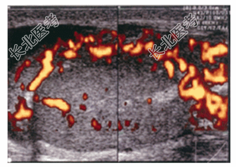 - 简答题2、血常规:白细胞20×10⁹/L;尿常规:白细胞500个/HP;阴囊彩色多普勒超声(图35):左侧附睾增大,血运丰富。目前考虑该患者的诊断可能为?