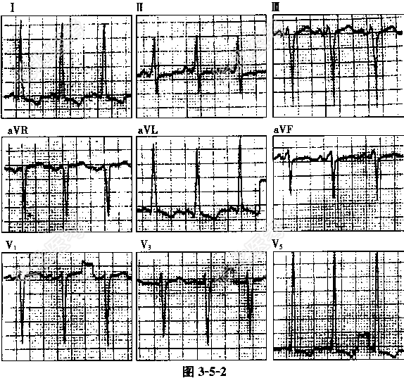 - [材料题] 患者,男,12岁,体格检查时发现心脏杂音,超声心动图诊断为动脉导管未闭。心电图如图3-5-2所示,