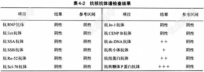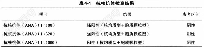 - [材料题] 患儿,女,9岁。主因“面部、手足红斑伴痛痒20d,加重2d”入院。20d前无明显诱因手掌、足底出现少量红斑,伴瘙痒,曾就诊当地医院给予外用药物治疗(具体不详),自觉效果不佳,上述皮损逐渐增多,延及颜面部,伴间断瘙痒、针刺样疼痛,不能忍受。2d前上述病情加重,发作时疼痛及瘙痒均剧烈。为进一步系统治疗就诊于我院,儿科门诊以“多行红斑?过敏性皮炎?”收入院。患儿发病以来精神、饮食可,夜间休息欠佳,大小便正常,体重无下降。2年前因颈部淋巴结肿大,于浙江大学医学院附属儿童医院住院治疗(具体不详)。体格检查 T36.5℃,P90次/分,R18次/分,体重26kg。发育正常,营养良好,神清配合,全身皮肤黏膜无黄染及出血点;头颅无畸形,眼睑水肿,巩膜无黄染,双侧瞳孔对光反射灵敏,双侧耳廓正常,外耳道无分泌物;心前区无隆起,波动范围正常,心率90次/分,心律齐,各瓣膜听诊区无明显杂音;胸廓对称无畸形,双肺呼吸运动对称,胸壁和肋骨无压痛,双肺叩诊音清,听诊肺呼吸音清,无干、湿啰音;腹平软,无腹壁静脉曲张,未触及肿块,肝、脾肋下未触及,Murphy征阴性,腹部无压痛、反跳痛,肠鸣音正常;生理反射存在,病理征未引出,肛门、外生殖器未查。皮肤科情况:面部、手掌、足底散在红斑,无水疱,无糜烂、渗出。实验室检查 见表4-1及表4-2。