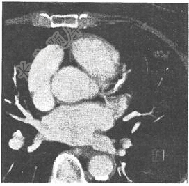 - 单项选择题患者,男,58岁,胸骨后阵发性疼痛半年余,透视见心影稍大,CT片如图,最可能的诊断是( )。
