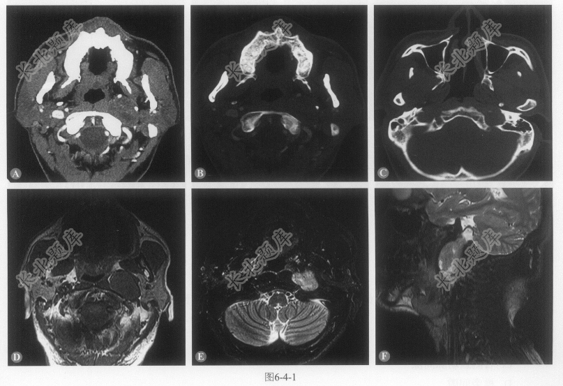 - 单项选择题患者男性,48岁,声音低沉4年,声嘶2年,加重伴呛咳2个月。CT、MRI图像如图6-4-1。下列说法错误的是: