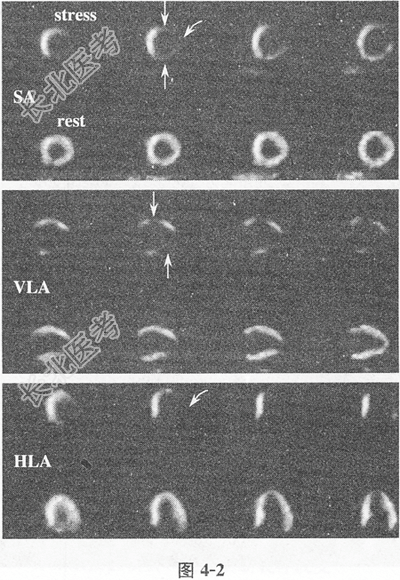 PET心肌灌注静息(rest)显像,双嘧达莫药物负荷显像(stresstest)见图4-2。