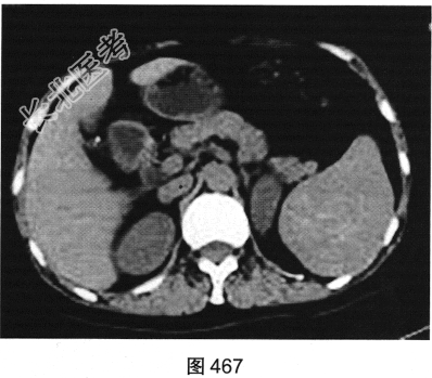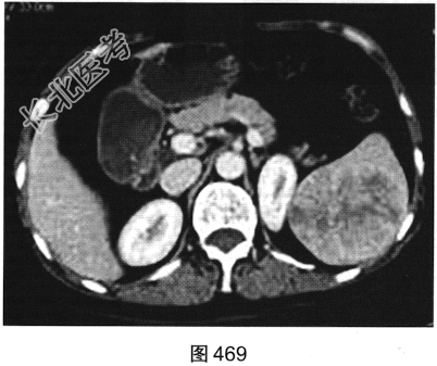 - 多项选择题2.[提示]患者行CT动态增强扫描,如图467~图469所示。对CT图像描述正确的是( )