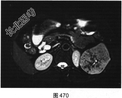 - 多项选择题4.[提示]为进一步明确诊断,患者行MRI检查, 如图470~图473所示。对MRI图像描述正确的是( )