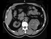 - 多项选择题男性,65岁。左侧腰背部胀痛伴无痛性全程血尿3个月余, CT平扫及增强检查如图所示,下列说法正确的是