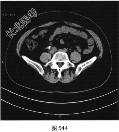 - 多项选择题3.[提示]CT平扫(图543、图544):约腰5椎体水平输尿管中段致密结节灶, 边界清楚,为0.8cm×0.5cm大小, 长轴平行于输尿管走行,边界清楚, CT值约735HU,局部输尿管管壁增厚、毛糙。应考虑的鉴别诊断为( )
