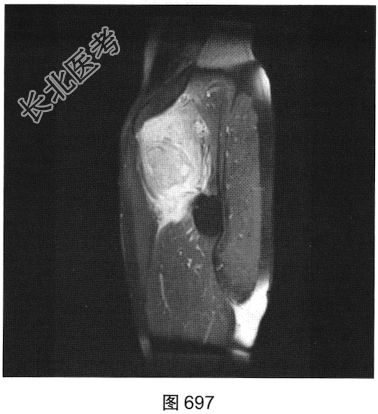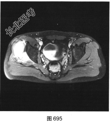 - 多项选择题2.[提示]患者行MRI平扫及增强扫描,见图692~图697。患者MRI平扫及增强扫描图像有哪些阳性表现( )