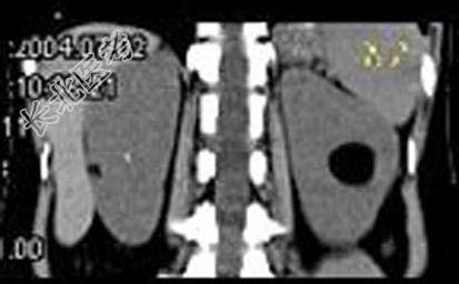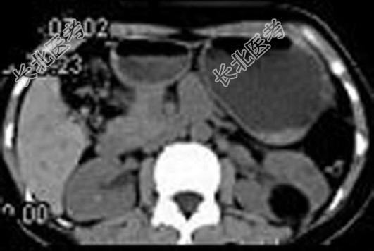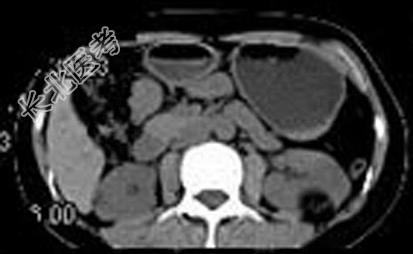- 多项选择题女,38岁, 体检时B超在左肾探及一中强回声光团,边界清, 内部回声均匀,CT检查如图所示, 下列说法正确的是 ( )