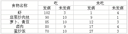 - [材料题] 某公司职工146人于4月初春游,在餐馆用中餐。深夜,有16人在各自家中突发腹痛、腹泻、恶心、呕吐,怀疑发病与中餐有关。进一步追查有114人在两天内先后有症状,收集到110人饮食与发病史。