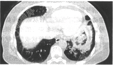 - 单项选择题患者,女,57岁,咳嗽、咳痰2个月余,3天前咯鲜血一次,约5ml。胸部CT扫描如图,则应诊断是