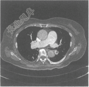 - 单项选择题男,39岁,突发胸痛,胸片未见异常,胸部增强CT如图。应诊断是
